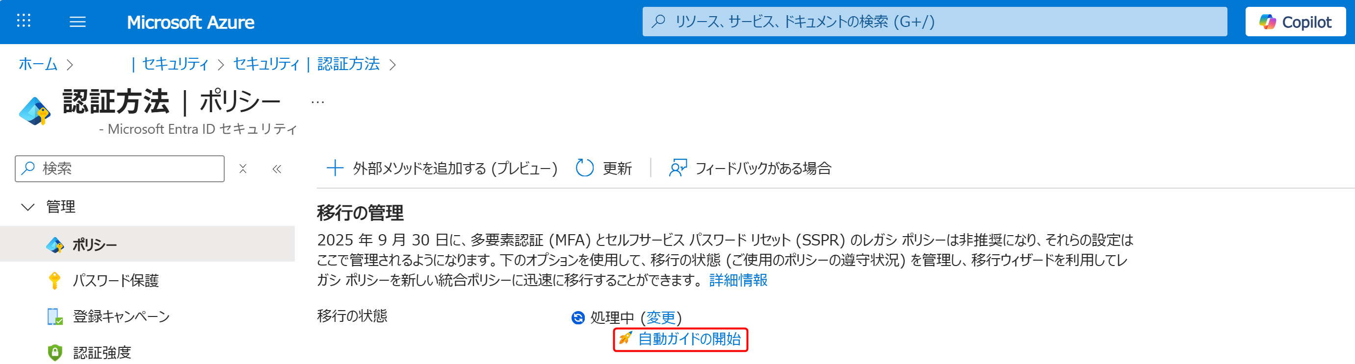 レガシーな MFA と SSPR 用のポリシーは 2025 年 9 月 30 日 に非推奨となり、この期日までに新しい認証方法ポリシーに移行いただく必要がございます。適切に移行いただければ、現在と動作に変わりはなく、また今後よりきめ細かい制御も可能となります。