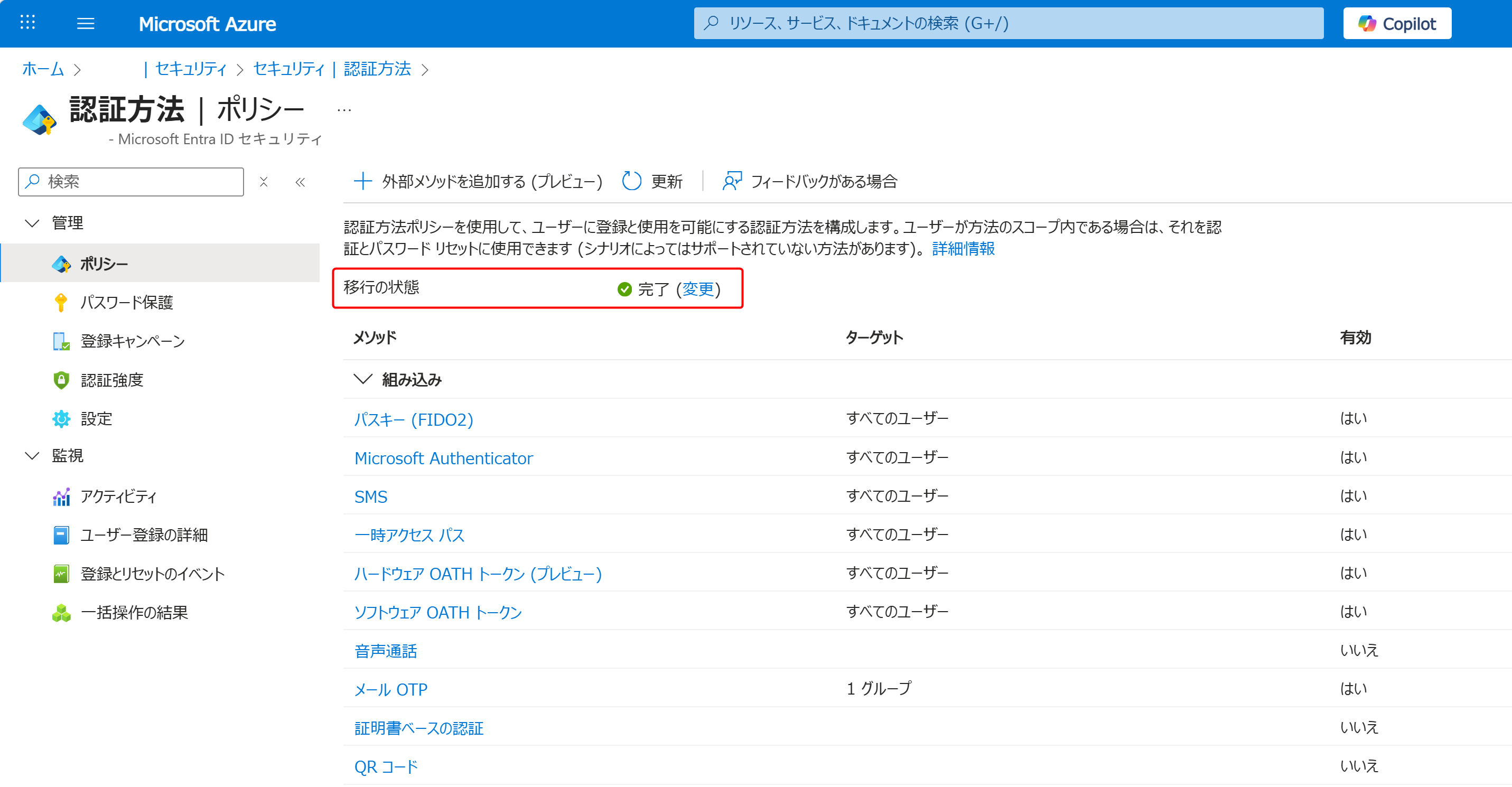 移行が完了済み | MFA | 認証方法ポリシーのみ |