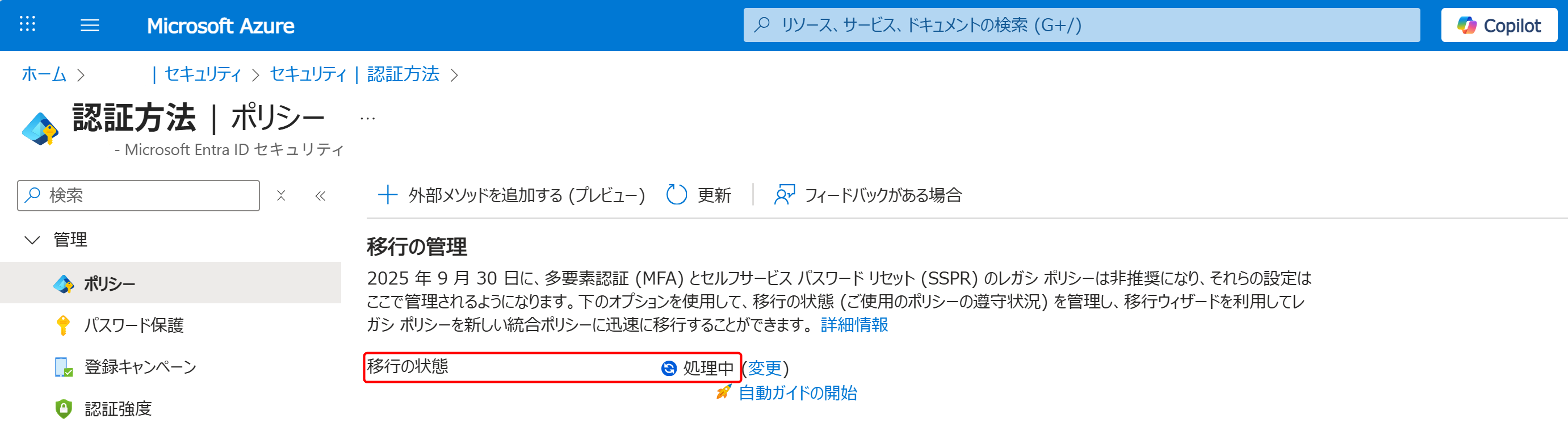 移行が進行中 | MFA | 認証方法ポリシーとレガシー MFA ポリシー |